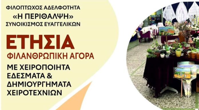 Ανοίγει σήμερα η καθιερωμένη ετήσια αγορά της Φιλοπτώχου Αδελφότητας Ευαγγελικών «Η Περίθαλψη». Η αγορά, την οποία επιμελήθηκαν με ιδιαίτερη φροντίδα τα μέλη της Φιλοπτώχου,...