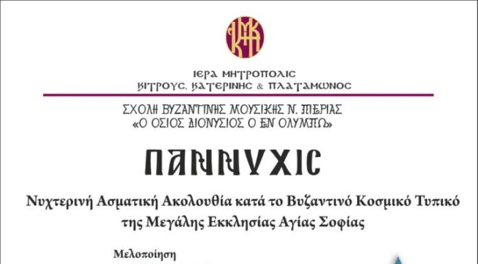 Το Σάββατο 13 Απριλίου και ώρα 7 το απόγευμα στον Ιερό Ναό των Αγίων Χριστοφόρου και Ευθυμίου Κατερίνης, θα τελεστεί η Ακολουθία της Παννυχίδος,...
