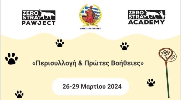 Ο Δήμος Κατερίνης υποδέχεται το τετραήμερο 26 έως 29 Μαρτίου, τη Zero Stray Academy, την πρώτη ακαδημία στην Ελλάδα που παρέχει γνώσεις στους Δήμους,...