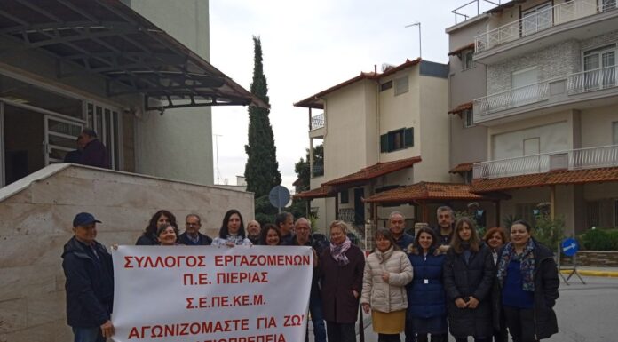Το Τοπικό Τμήμα της Περιφερειακής Ενότητας Πιερίας του Συλλόγου Εργαζομένων Περιφέρειας Κεντρικής Μακεδονίας συμμετείχε στις 8 Φεβρουαρίου στην Πανελλήνια κίνηση διαμαρτυρίας που διοργάνωσε η...