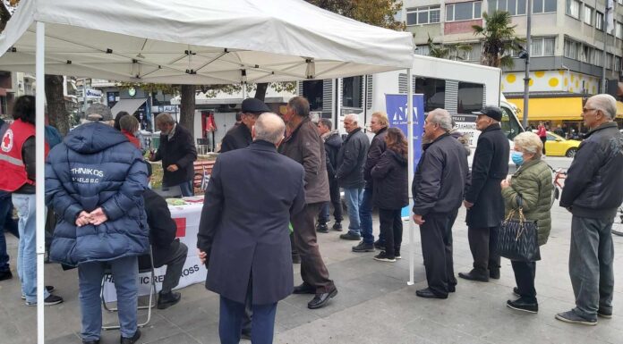 Μεγάλη η προσέλευση των Κατερινιωτών στις δωρεάν εξετάσεις που προσφέρουν σήμερα η ΔΕΕΠ και ο Ερυθρός Σταυρός στην κεντρική πλατεία της Κατερίνης. Ο κος Χαράλαμπος...