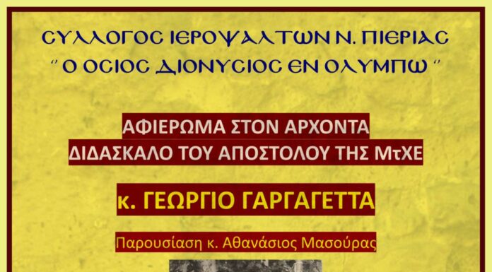 Ο Σύλλογος Ιεροψαλτών Ν.Πιερίας 'Ο ΟΣΙΟΣ ΔΙΟΝΥΣΙΟΣ Ο ΕΝ ΟΛΥΜΠΩ' σας προσκαλεί αυτό το Σάββατο στις 19:00, στην επάνω αίθουσα της Εκάβης, στην εκδήλωση-αφιέρωμα προς...
