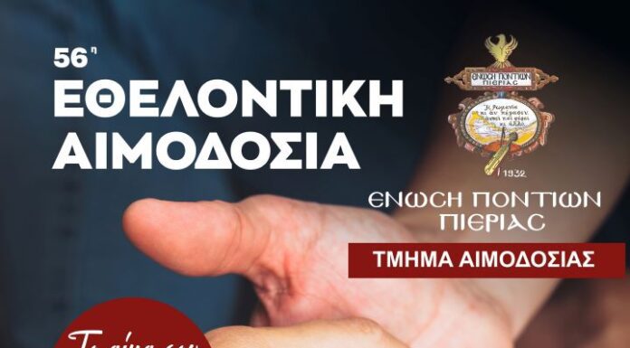 Η Ένωση Ποντίων Πιερίας προσκαλεί τα μέλη και τους φίλους του συλλόγου να συμμετάσχουν στην 56η Εθελοντική Αιμοδοσία που θα πραγματοποιηθεί την Κυριακή 12...