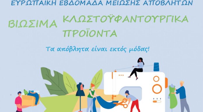 Ο Δήμος Κατερίνης, συμμετέχει και φέτος (19-27 Νοεμβρίου) στην ευρωπαϊκή εβδομάδα μείωσης αποβλήτων (EWWR). Ειδικότερα, με θέμα “Βιώσιμα Κλωστοϋφαντουργικά Προϊόντα” οργανισμοί τοπικής αυτοδιοίκησης, δημόσιες...