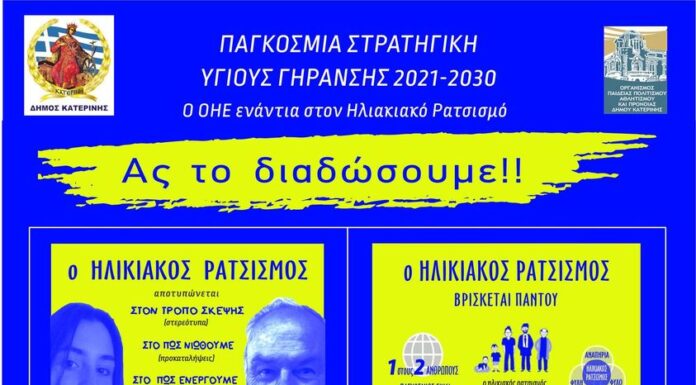 Τα ΚΑΠΗ Κατερίνης αποτίνουν φόρο Τιμής στην Παγκόσμια ημέρα ηλικιωμένων συμμετέχοντας με τις δράσεις τους και προωθώντας την καμπάνια που οργανώνουν τα κράτη μέλη...