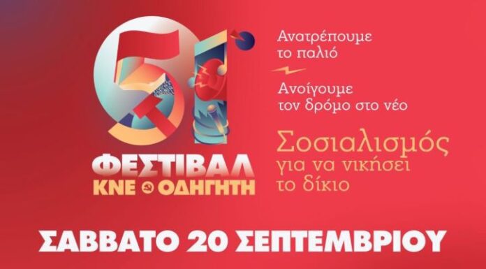 Όλα έτοιμα για το άνοιγμα των εκδηλώσεων του 51ου Φεστιβάλ ΚΝΕ - Οδηγητή στη Θεσσαλονίκη, στο πρώην στρατόπεδο Καρατάσιου, στην Πολίχνη. Το Σάββατο 20 Σεπτέμβρη...