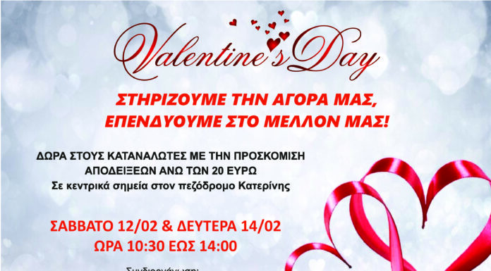 Σε ρυθμούς Αγίου Βαλεντίνου θα βρίσκεται η κεντρική αγορά της Κατερίνης το Σάββατο 12 και τη Δευτέρα 14 Φεβρουαρίου!  Με αφορμή την ημέρα του Έρωτα...
