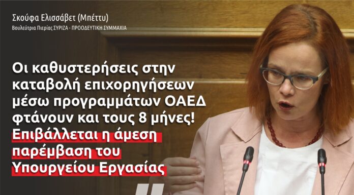 Να κατατεθούν αναλυτικά στοιχεία, σε ό,τι αφορά την καθυστέρηση στην καταβολή των επιχορηγήσεων των προγραμμάτων ΟΑΕΔ, καθώς και για μια σειρά άλλων ζητημάτων, ζητά...