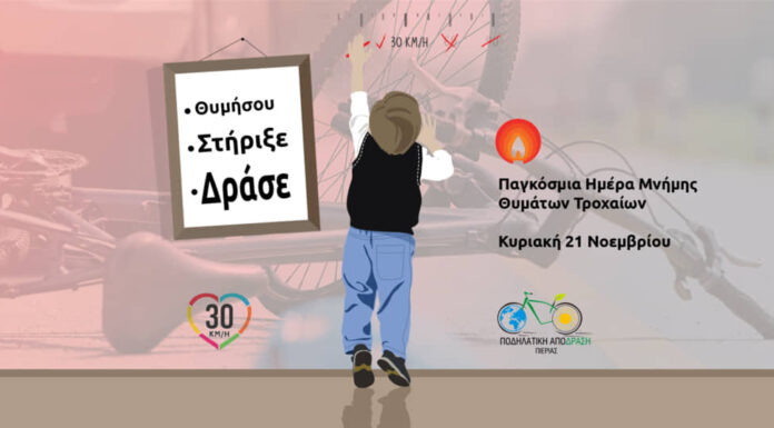 Την 3η Κυριακή του Νοέμβρη (21/11/2021) τιμούμε την Παγκόσμια Ημέρα Μνήμης Θυμάτων Τροχαίων με μια Ποδηλατοπορεία Μνήμης στην πόλη της Κατερίνης. Σας περιμένουμε όλους...