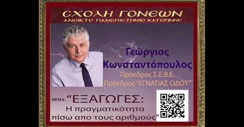 Ο πρώην Υφυπουργός Υγείας, νυν Πρόεδρος του Σ.Ε.Β.Ε. και Πρόεδρος της "Εγνατίας Οδού" Γεώργιος Κωνσταντόπουλος είναι ο επίσημος ομιλητής και καλεσμένος της Σχολής Γονέων...