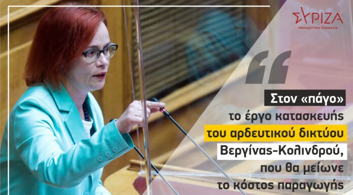 Απαντήσεις για το μέλλον του μεγάλου και εξαιρετικά σημαντικού έργου της κατασκευής του αρδευτικού δικτύου Βεργίνας – Κολινδρού, ζητά με ερώτησή της προς τους...