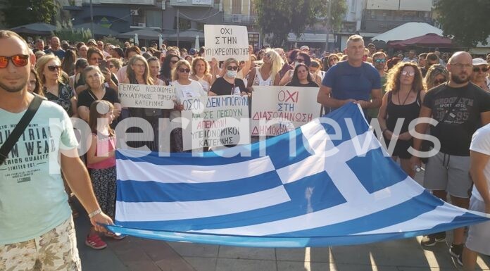 Συγκέντρωση διαμαρτυρίας στην Πλατεία Ελευθερίας, πραγματοποιούν αυτή την ώρα πολίτες της Κατερίνης που εναντιώνονται στη διαχείριση της πανδημίας από την κυβέρνηση και των περιοριστικών...