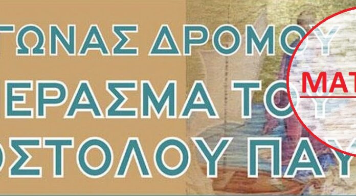 Την ματαίωση του προγραμματισμένου για το απόγευμα του Σαββάτου 19 Ιουνίου 2021, 6ου Αγώνα Δρόμου «Το Πέρασμα του Αποστόλου Παύλου», γνωστοποιεί η Ιερά Μητρόπολη...