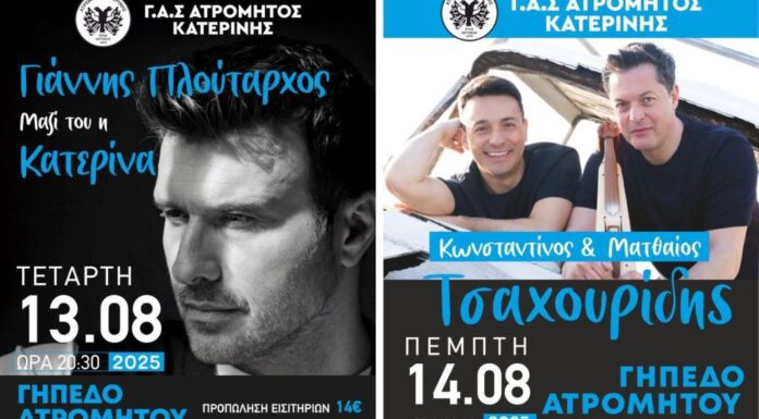 Με δύο συναυλίες  σύγχρονου ρεπερτορίου αλλά και παραδοσιακού πραγματοποιείται για δεύτερη συνεχή χρονιά το «Διήμερο Πολιτισμού 2025» που διοργανώνει ο Γ.Α.Σ. Ατρόμητος Κατερίνης. Οι εκδηλώσεις...