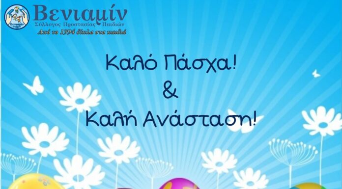 Ο Πρόεδρος, το Δ.Σ., το προσωπικό και οι εθελοντές του Συλλόγου Προστασίας Παιδιών ΒΕΝΙΑΜΙΝ σας εύχονται όλοψυχα Καλή Ανάσταση με υγεία, αγάπη, δύναμη και...