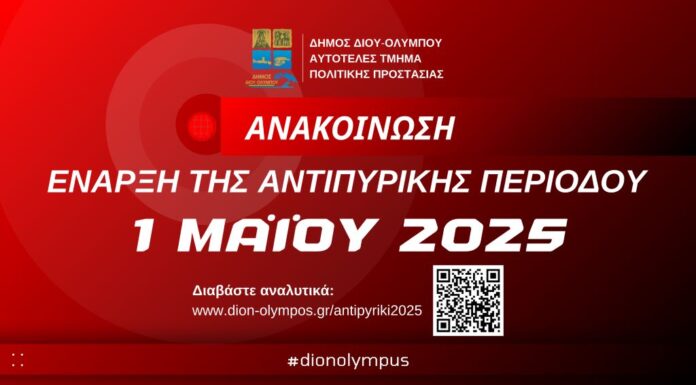 Ξεκινά την Πέμπτη 1η Μαΐου 2025 η φετινή αντιπυρική περίοδος, που θα διαρκέσει έως και την 31η Οκτωβρίου 2025. Στο πλαίσιο της διαρκούς ενημέρωσης και...