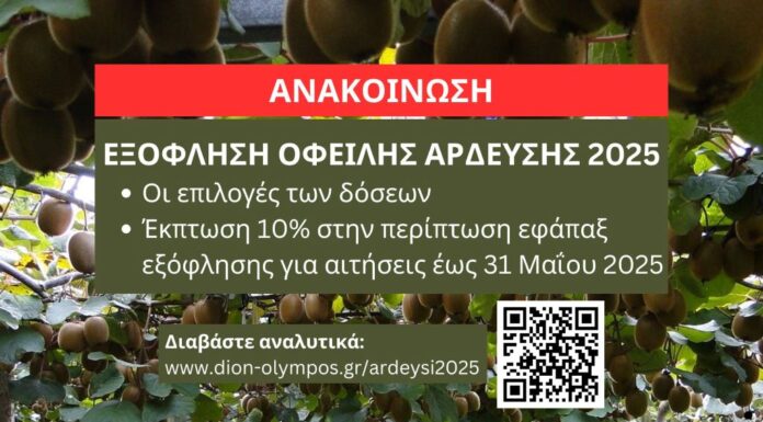 Με αφορμή την έναρξη της νέας αρδευτικής περιόδου, αλλά και της υποβολής των δηλώσεων ΟΣΔΕ για το έτος 2025, καλούνται οι καλλιεργητές της Δ.Ε....