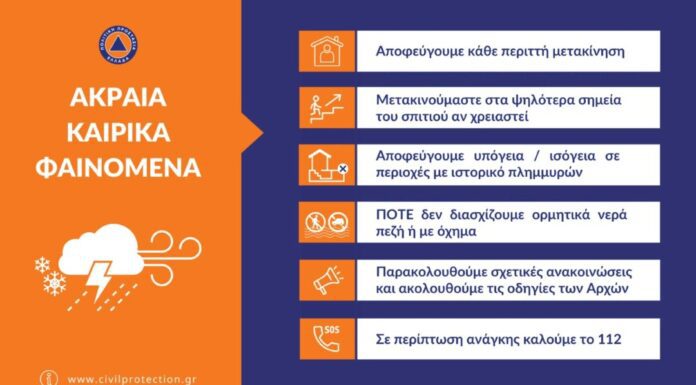Η Γενική Γραμματεία Πολιτικής Προστασίας συνιστά στους πολίτες να είναι ιδιαίτερα προσεκτικοί, μεριμνώντας για τη λήψη μέτρων αυτοπροστασίας από κινδύνους που προέρχονται από την εκδήλωση των...