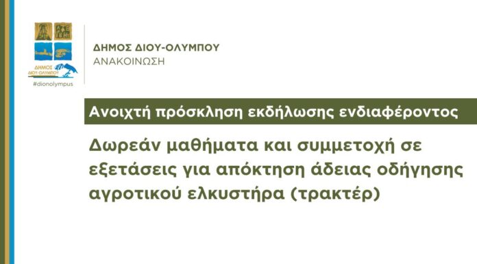 Ο Δήμος Δίου-Ολύμπου σε συνεργασία με την Περιφερειακή Ενότητα Πιερίας / Διεύθυνση Αγροτικής Οικονομίας και Κτηνιατρικής απευθύνουν πρόσκληση προς όλους όσοι ενδιαφέρονται, για την...