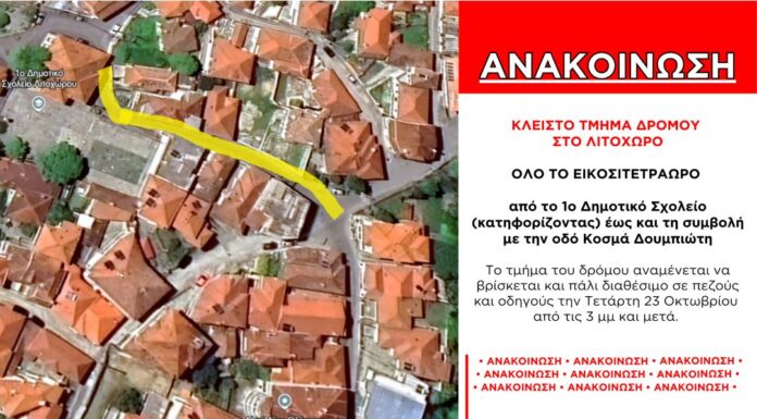 Σύμφωνα με ενημέρωση του ΔΕΔΔΗΕ συνεχίζονται οι εργασίες υπογειοποίησης του δικτύου στο τμήμα της οδού Ενιπέως στο Λιτόχωρο, από το 1ο Δημοτικό Σχολείο και...