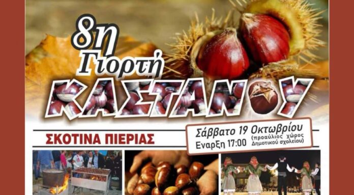 Του Περικλή Χατζηγιάννη, Για όγδοη χρονιά η Πνευματική Κίνηση Σκοτίνας διοργάνωσε τη γιορτή του κάστανου (Σάββατο 19-10-2024) στην ομώνυμη δημοτική κοινότητα του Δήμου Δίου-Ολύμπου, σε...