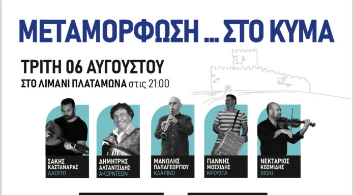 Ο Μορφωτικός Πολιτιστικός Σύλλογος Πλαταμώνα σας προσκαλεί στην εκδήλωση “Μεταμόρφωση... στο κύμα” τη Δευτέρα 5 και την Τρίτη 6 Αυγούστου 2024 στον Πλαταμώνα. Η χορωδία...