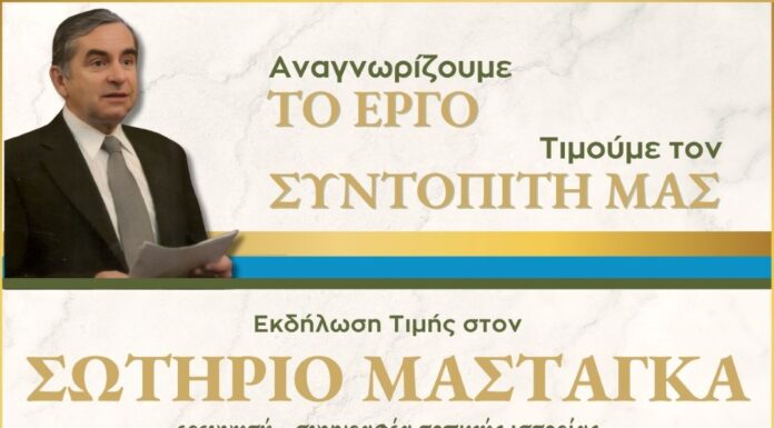Ο Δήμος Δίου-Ολύμπου σας προσκαλεί στην εκδήλωση τιμής στον Σωτήρη Μασταγκά, ερευνητή-συγγραφέα τοπικής ιστορίας, για το συγγραφικό του έργο, το Σάββατο 20 Ιουλίου 2024...