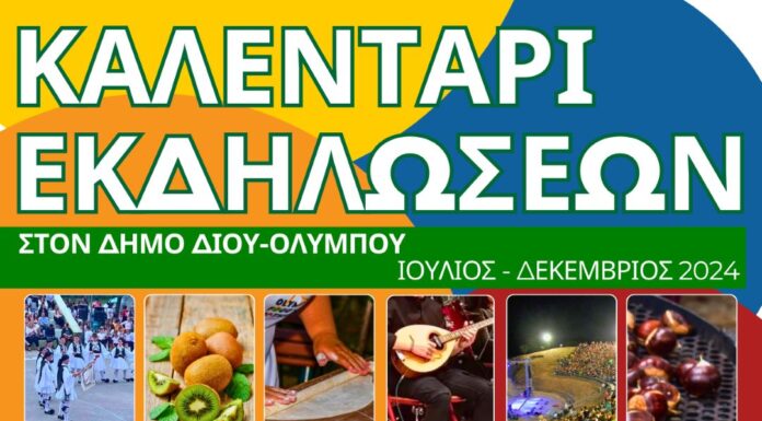 Πλούσιο το «Καλεντάρι» των εκδηλώσεων που θα πραγματοποιηθούν στον Δήμο Δίου-Ολύμπου έως και το τέλος του χρόνου. Περισσότερες από 40 εκδηλώσεις είναι προγραμματισμένες, από...