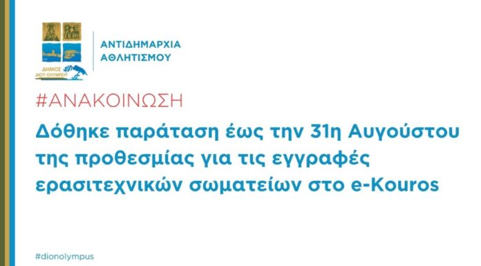 Με τη δημοσίευση στο ΦΕΚ (Β’ 3419, 13/06/2024) της σχετικής Απόφασης του αναπληρωτή Υπουργού Αθλητισμού, Γιάννη Βρούτση, παρατείνεται έως και τις 31 Αυγούστου 2024...