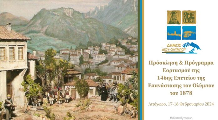 Για τον εορτασμό της 146ης Επετείου της Επανάστασης του Ολύμπου του 1878, θα πραγματοποιηθούν από τον Δήμο Δίου-Ολύμπου στις 17 και 18 Φεβρουαρίου 2024...