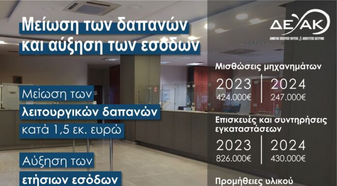 Σάββας Οφείδης: «Χρηστή διοίκηση, νοικοκύρεμα και σεβασμός στα χρήματα των δημοτών» Εντυπωσιακά στοιχεία για τη ορθολογική οικονομική διαχείριση της ΔΕΥΑΚ με μείωση κατά 50% των...