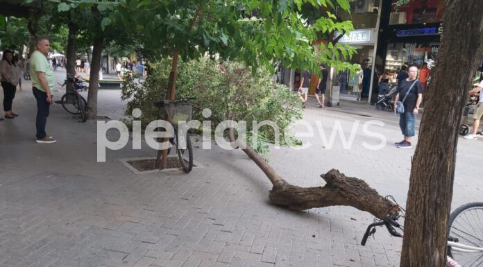 Άγιο είχαν οι Κατερινιώτες που έκαναν βόλτα στα μαγαζιά του πεζόδρομου όταν από ένα ελαφρύ φύσημα του ανέμου έσπασε ένα μεγάλο κλαδί δέντρου στην...