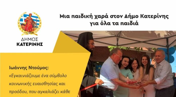 Τα εγκαίνια της πρώτης συμπεριληπτικής παιδικής χαράς στον Δήμο Κατερίνης, ενός έργου με ιδιαίτερο κοινωνικό αποτύπωμα που στοχεύει στην ένταξη, την ισότητα και τη...