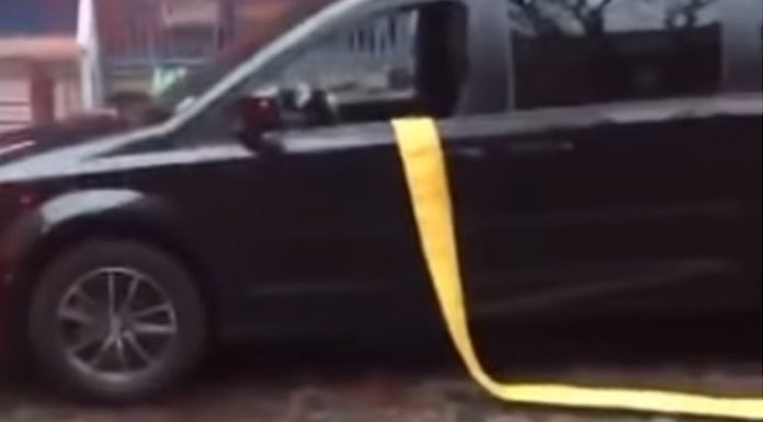 Μια γυναίκα πάλευε, στην κυριολεξία, με την αέρα και τις πόρτες.  Συγκεκριμένα, όπως φαίνεται στο βίντεο από τις κάμερες ασφαλείας, κατέβηκε από το αυτοκίνητό της...