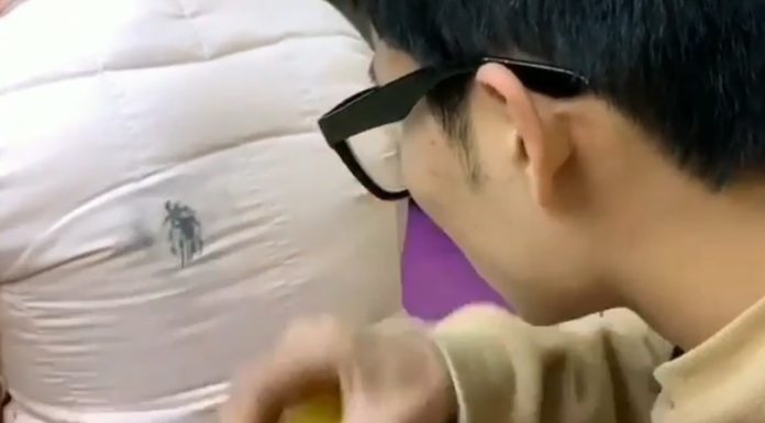 Ένας άνδρας δείχνει τον τρόπο να αφαιρέσουμε έναν λεκέ από μελάνι σε ένα ρούχο χρησιμοποιώντας κολλητική ταινία. Εφαρμόζει την ταινία πάνω στον λεκέ και την...
