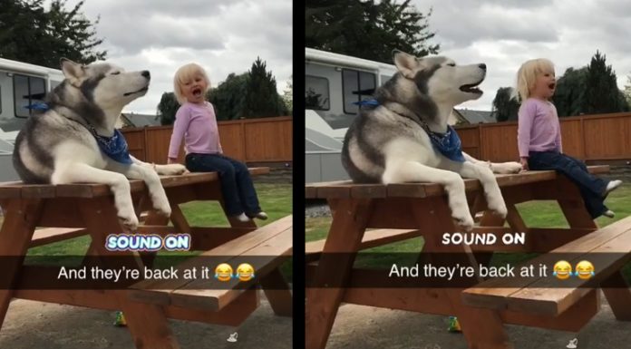 Στο Marysville της Ουάσινγκτον, ο Dude το χάσκι και η 2 ετών Everlee, έχουν μια στιγμή συνεργασίας. Το μικρό κορίτσι διασκεδάζει ουρλιάζοντας και ο...