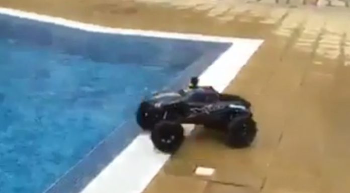 Ένα τηλεκατευθυνόμενο αυτοκίνητο τρέχει με ταχύτητα πάνω στο νερό μιας πισίνας. Ο Ιησούς Χριστός! Πηγή: Zougla.gr