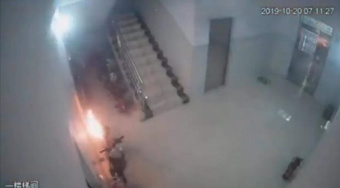 Στην είσοδο μιας πολυκατοικίας στην Κίνα, η μπαταρία ενός ηλεκτρικού σκούτερ εκρήγνυται καθώς φορτίζει. Ακολουθούν πολλαπλές εκρήξεις και ο χώρος γεμίζει με καπνό. Δείτε το...