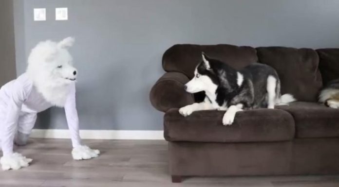 Ένας άνδρας μεταμφιεσμένος με μια στολή λύκου επιχειρεί να τρομάξει τα δύο χάσκι του που κάθονται στον καναπέ... Βρείτε περισσότερα βίντεο στο coremag.gr! Πηγή: Zougla.gr