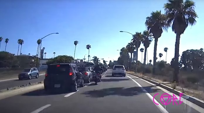 Στις 18 Αυγούστου στην Ocean Beach της Καλιφόρνια, ένας μοτοσυκλετιστής επιχειρεί να σπάσει με το πόδι του εν κινήσει τον καθρέφτη ενός αυτοκινήτου που...