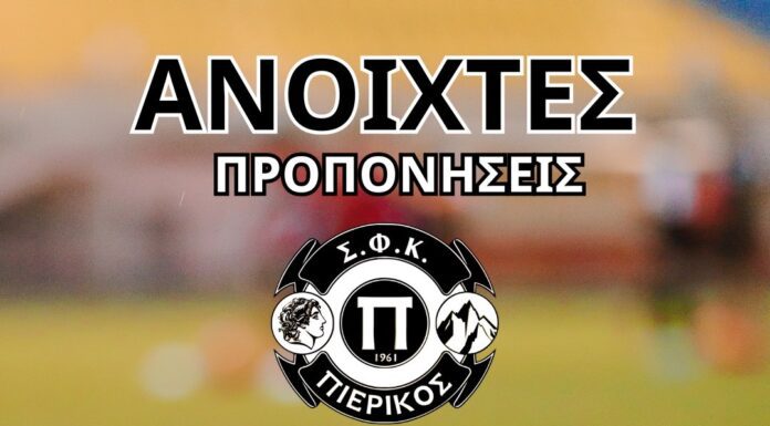 Όσοι ποδοσφαιριστές επιθυμούν να στελεχώσουν την υπάρχουσα ομάδα Κ-14 του ΣΦΚ ΠΙΕΡΙΚΟΥ 1961 (γεννηθέντες 2012 και 2013) η οποία έχει σκοπό να συμμετέχει σε...