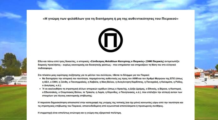 Εδώ και τριάντα και πλέον χρόνια, ο ιστορικός «Σύνδεσμος Φιλάθλων Κατερίνης ο Πιερικός» (ΣΦΚ Πιερικός), αντιμετωπίζει διαρκείς προκλήσεις, κυρίως οικονομικής και διοικητικής φύσεως, που επηρεάζουν τη...