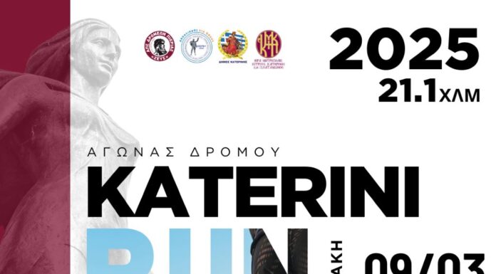Ο Α.Π.Σ. Δρομέων Πιερίας «ΖΕΥΣ» ανακοινώνει τη διοργάνωση του 14ου Αγώνα Δρόμου Katerini Run 2025, που θα διεξαχθεί την Κυριακή 9 Μαρτίου 2025, σε...