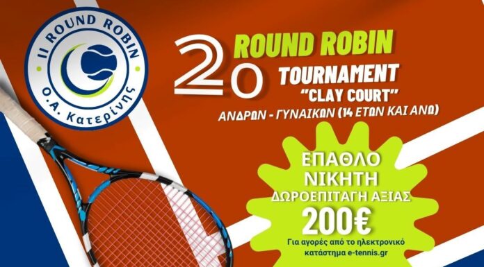 Ο Όμιλος Αντισφαίρισης Κατερίνης, με μεγάλη χαρά, ανακοινώνει, ότι στις 24 Μαΐου 2024 ξεκινά το 2ο Round Robin Tournament "Clay Court" για άνδρες και...