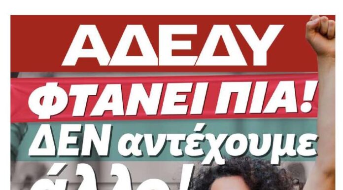 Τα μέλη του ΝΤ της Α.Δ.Ε.Δ.Υ. Πιερίας καλούν όλους τους εργαζόμενους στο Δημόσιο τομέα να συμμετέχουν μαζικά στη ΓΕΝΙΚΗ ΠΑΝΕΛΛΑΔΙΚΗ ΑΠΕΡΓΙΑ της 9ης του...
