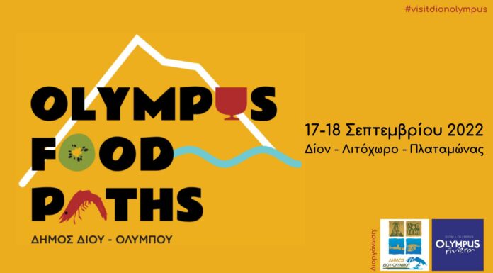 Ο Δήμος Δίου-Ολύμπου σας προσκαλεί στο 1ο Γαστρονομικό Φεστιβάλ Ολύμπου «Olympus Food Paths», το Σάββατο 17 και την Κυριακή 18 Σεπτεμβρίου 2022 σε Δίον,...