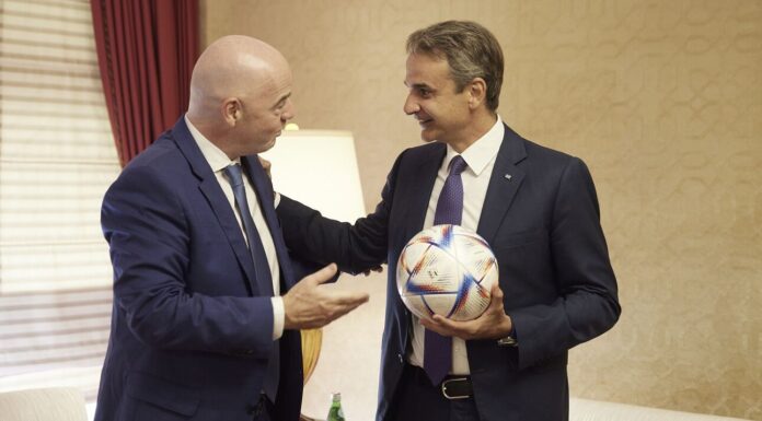 Συνάντηση με τον πρόεδρο της FIFA Τζάνι Ινφαντίνο είχε ο Κυριάκος Μητσοτάκης στο Κατάρ. Στη συνάντηση, που διεξήχθη σε φιλικό κλίμα, συζητήθηκε η προετοιμασία ενόψει των αγώνων του...