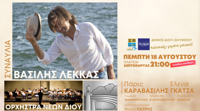 Με τη μεγάλη συναυλία του Βασίλη Λέκκα με την Ορχήστρα Νέων Δίου την Πέμπτη 18 Αυγούστου 2022 στις 9 το βράδυ στην πλατεία της...