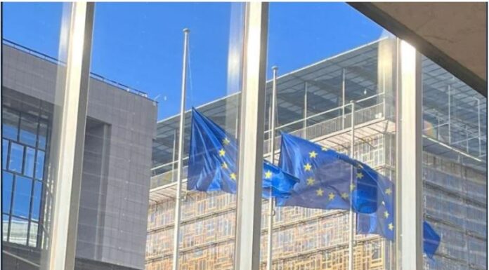 Μεσίστιες κυματίζουν οι σημαίες της ΕΕ στα κτίρια της Κομισιόν στη μνήμη των θυμάτων της σιδηροδρομικής τραγωδίας στα Τέμπη, όπως αναφέρει σε ανάρτησή του στο Twitter ο...