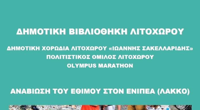 Η Δημοτική Βιβλιοθήκη Λιτοχώρου, η Δημοτική Χορωδία Λιτοχώρου «Ιωάννης Σακελλαρίδης», ο Πολιτιστικός Όμιλος Λιτοχώρου και ο Olympus Marathon συμμετέχουν στην αναβίωση του "εθίμου με...